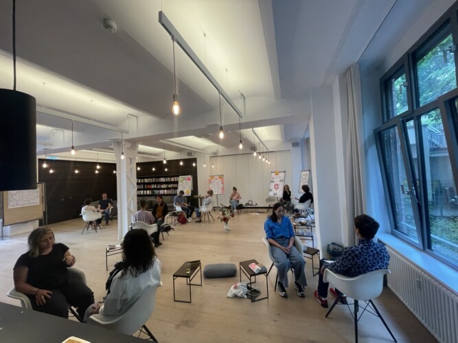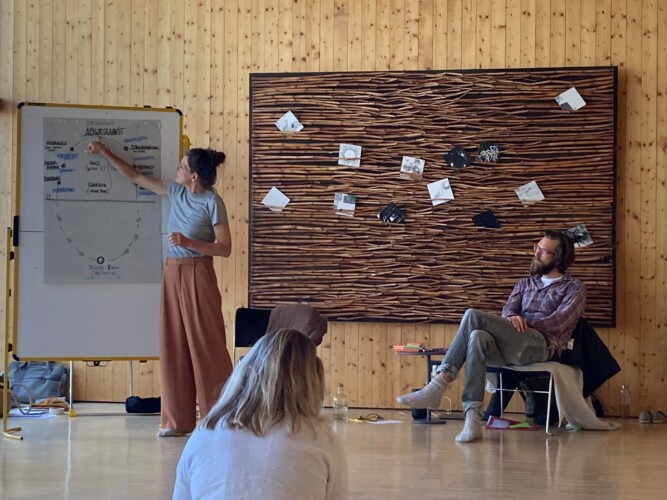 Wir nennen unser Programm “Ausbildung”, weil wir davon ausgehen, dass dieses Wort für viele Menschen geläufig ist und eine bestimmte Vorstellung entsteht: Menschen lernen etwas, und am Ende geht man mit mehr Wissen und Erfahrung. Gleichzeitig wollen wir betonen, dass wir nicht davon ausgehen, dass Menschen jemals wirklich aus-gebildet, sprich fertig, sind. Wir sehen alles, was wir tun, und das Leben selbst als einen sich ständig wandelnden Prozess. Insofern ist unser Programm beides – Ausbildung im Sinne eines Lernraums und ein sich entwickelnder Prozess, der nie fertig ist.