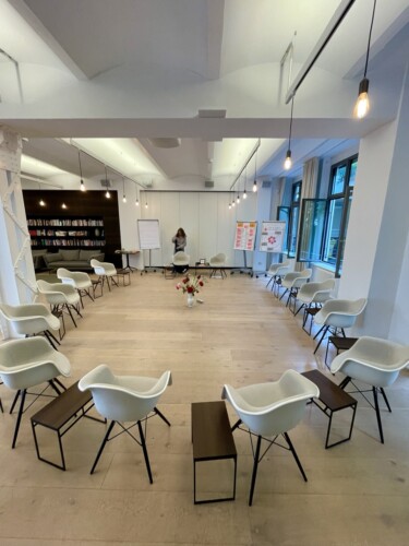 Neben diesem Meta-Praxisbezug werden in Kleingruppen konkrete Fälle aus dem Teamcoach- und Facilitator-Alltag bearbeitet, gemeinsam reflektiert und in Simulationen geübt. So kann das Gelernte direkt angewendet und erfahren werden. Dabei fördern wir die Kreation neuer Methoden, um auf die zunehmende Komplexität der Arbeitswelt leichter und vielleicht auch spielerischer antworten zu können.